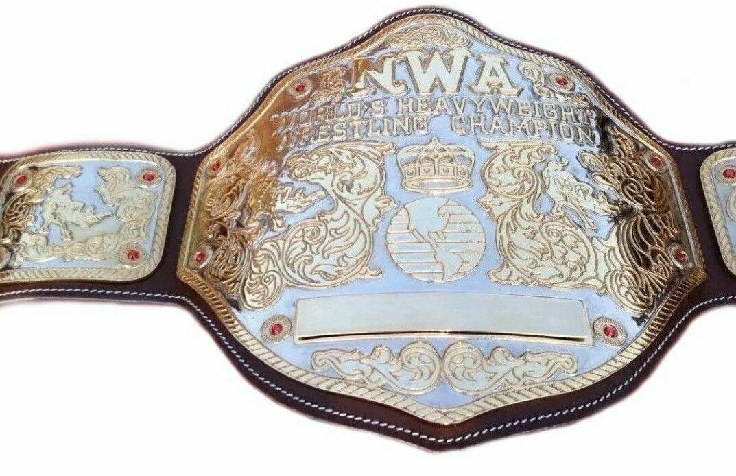 Capture the championship spirit with the NWA BIG GOLD Zinc Championship Belt. This hand-crafted beauty is made with zinc plates. Authentic cowhide leather makes this Championship Belt, giving it a premium look and feel. The craftsmanship of these belts is beyond compare and will be sure to make an impact in any collection. Be the next champion like RIC FLAIR and HULK HOGAN. This is a championship belt for those with professional taste with championship belt collection.