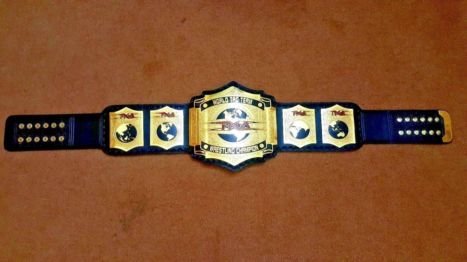 The TNA World Tag Team Championship is a professional wrestling championship now known as Impact World Tag Team Wrestling Championship. The Current Champions of the TNA World Tag Team Championship(Impact World Tag Team Wrestling Championship) are The Motor City Machine Guns (Chris Sabin and Alex Shelly). The TNA World Tag Team Championship belt is one the most prestigious Championship belts made with brass metal plates. Genuine Cowhide leather is used to make the TNA World Tag Team Championship belt straps. This Championship belt is beautiful and is a dream of every TNA World Tag Team Championship fan. Are you a fan of the TNA World Tag Team Championship? If yes. So, What are you waiting for? Order your TNA World Tag Team Championship belt now from Zees Belts.